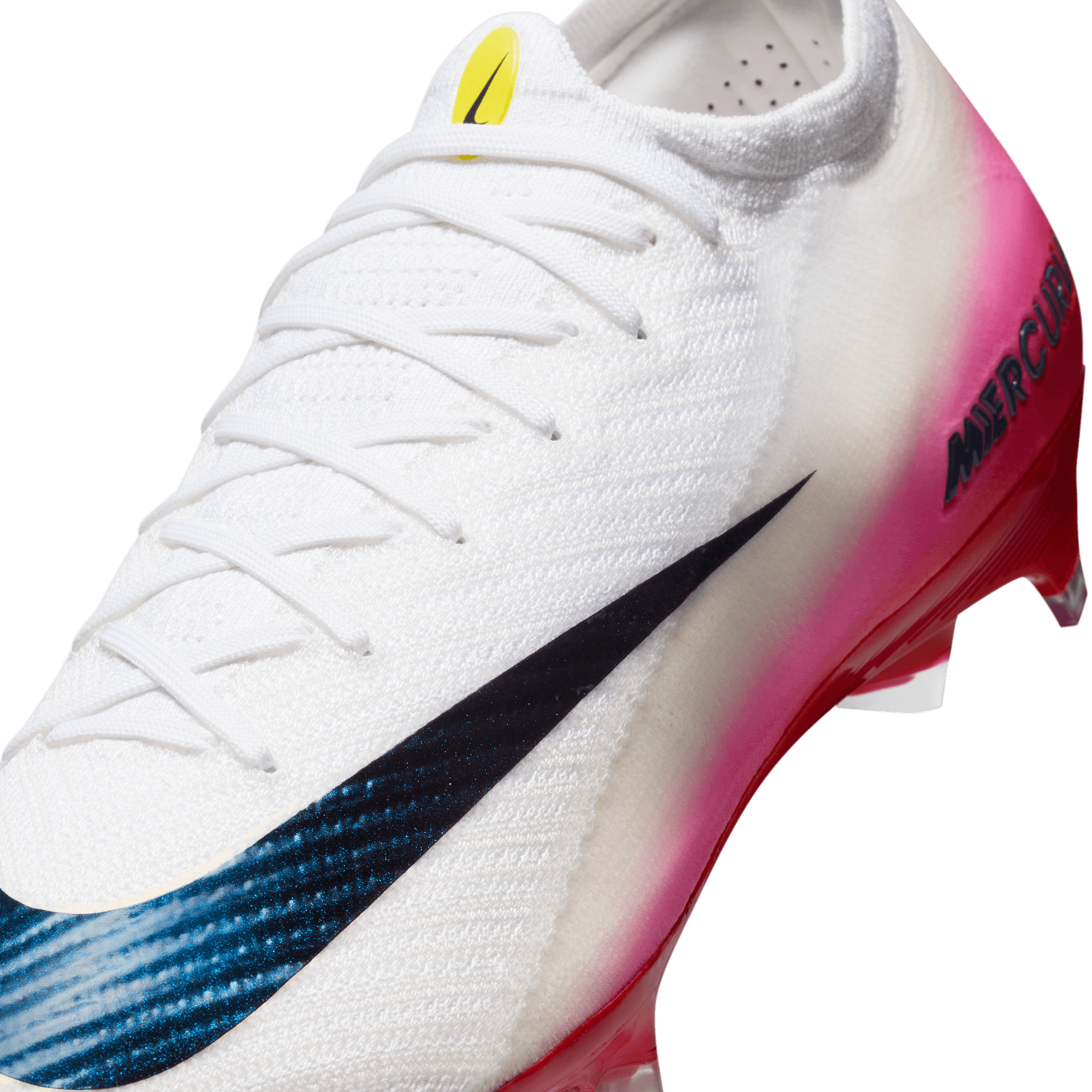 - A teljes Flyknit felsőrész sebességre lett tervezve. Az oldalpanelekben hihetetlenül könnyű és erős Flyknit (más néven Atomknit) található, amely csökkenti a súlyt, és tartást biztosít. Az U nyíláson keresztül pedig feltárul a játékosaink kedvence, a megbízható és alkalmazkodó Flyknit. A Gripknit, az Atomknit és a Flyknit együttesen az eddigi legvékonyabb Mercurial felsőrészt alkotja, amellyel közelebb kerülhetsz a labdához, és csökken a betörési idő.
